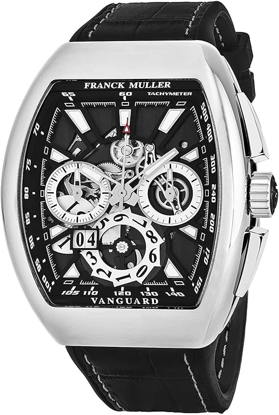 Franck Muller Vanguard Grande Date Mens Automatic Chronograph Watch Tonneau Stainless Steel Skeleton Face With Luminous Hands And Sapphire Crystal Black Band Swiss Made Automatic Watch For Men Franck Muller Car Rentals San Francisco Vuhl On Credit Report